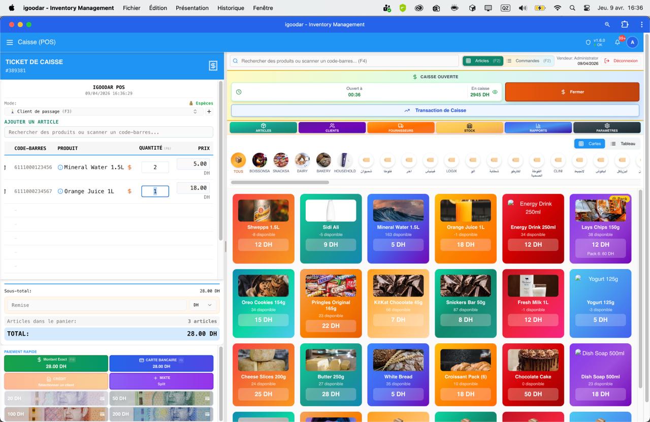 منين بديت خدام بـ iGoodar، ولى عندي تحكم أكثر فالمحل. البيع، الستوك، وحتى حساب الكريدي باينين ليا بوضوح.